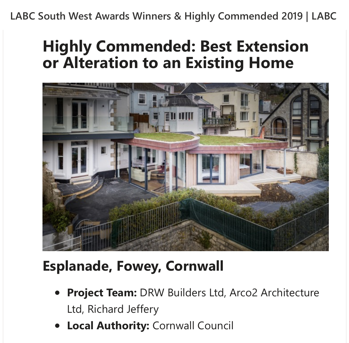 LABC South West Awards Highly Commended